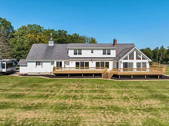 Privately sited from the road, set on 25 acres, this generous Cape home offers many opportunities. Are you interested in having horses or animals? Or perhaps seeking a primary bedroom suite on the first floor for easy living? Then look no further. Exterior updates include a brand new expansive deck & freshly painted clapboards. Inside you'll find fresh paint in many rooms along with updated flooring. Considering multigenerational living? The second floor offers two bedrooms with a full bath as well as two unfinished areas with great potential for additional space. Outside, the private pond is stocked with bass & a cleared trail encircles the property for walking or riding. There is also electricity & water to the garden shed. This sunlit, warm & inviting property provides ample space for entertaining, work & play. Agent's please see non-public remarks.