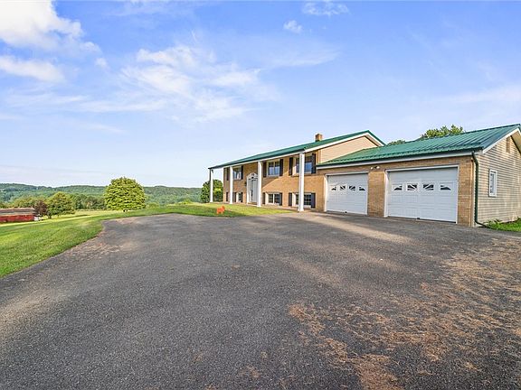 Hunter or Horseman's DREAM! Over 60 Acres of pasture quality and/ or Hunting ground! Sitting high on the hill, rolling and level, Private and Serene-- it will take your breath away. Bring your Quads and your Horses! Enjoy the bounty of the local game and take a ride and see the Allegheny River! The best of both worlds- mostly cleared and flat-- surrounded by wooded slopes with great mature timber. Borders McVille Airport-- Take a flight or watch the infrequent planes. Sit on the 15x15 covered deck and watch the sun rise and set. The Extra Large Split Entry Home has a nice wide open floorplan, updated kitchen, electrical panel, and newer metal roof. There is a Walk-in Tub in the main bath. The lower level features a wood burning fireplace, large full bath, laundry, utility and a sizeable 4th bedroom. The 40x30 Barn was once a stable, and can be again. It includes a great studio/ office space or tack room and its own propane furnace. HSA warranty.