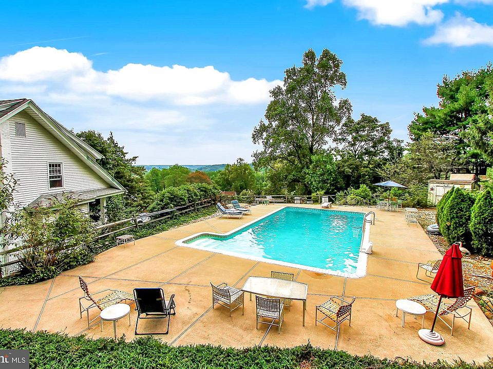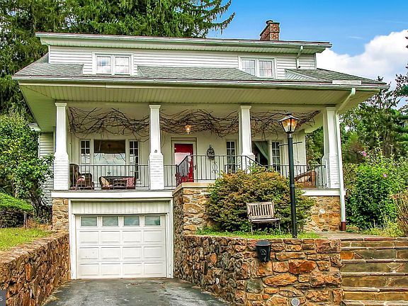 Charm & Character abound at this hilltop property with huge pool and brand new HVAC (complete central air and heat system)! High up on Mount Penn overlooking the Antietam and Exeter valleys and surrounding hills in the distance lies this lovely, ultra-complete property with everything you need. Well-built with stone and brick, this magnificent home on over a half an acre boasts a pool bigger than most hotels would even have, and a view from the pool reminiscent of something you'd see on a magazine cover or an expensive home rental website. Pool upgrades include a new $10,000 heater and $6,000 pool cover. Two distinct porches are perfectly placed for your enjoyment: The large front porch with views of Neversink Mountain, and equally big screened in private back porch right off the kitchen. The first-floor layout is ideal with its half-bathroom between the kitchen and dining room which makes a square with the living room and great room while hardwood floors highlight the surface. Upstairs a nice long office/play room compliments the three very nice sized bedrooms, including the spacious master bedroom with a retro-looking master bath inside. Plenty of storage here with an attic and basement with several rooms. Lots of parking with a long driveway and a garage deep enough for two cars or plenty of your equipment. Perfect for pets or children with the fenced in area in the backyard. Antietam is a lovely place to live with multiple lakes, parks, well known hiking trails and several long-time, popular boutique neighborhood restaurants including the iconic and legendary Stokesay Castle about 300 yards through the woods. Close to everything yet tucked away, don't miss this impressive yet affordable gem on top of the hill. Click on the video icon for a stunning virtual tour.