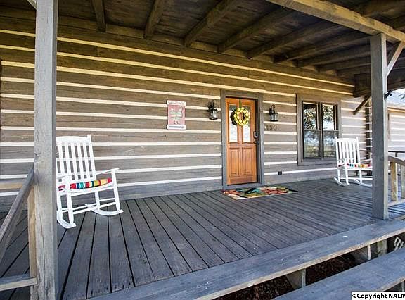 Feel like you are living at a resort every single day in this Log Cabin situated on 3 acres! Everything was updated in 2017! 2-Story Family room features a faux stone fireplace with raised hearth. Natural pine floors throughout. Kitchen features distressed cabinets, island, copper farm sink, gas range, granite counters, tile backsplash, undermount cabinet lighting. Powder Bath complete with galvanized tin wall and barn door. Relax in the glamour bath featuring claw foot tub, tile shower, dual vanity, 7X6 walk-in closet with barn door and tile floors. Beautiful staircase leads to an open loft overlooking the family room. Storage Bldg.