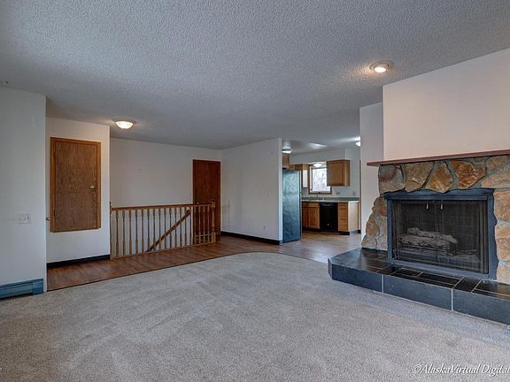 Wonderful hillside ranch w/ walkout basement in charming neighborhood close to JBER and Tikahtnu. 5 bedrooms with an additional den/study. Large fully fenced yard and great BBQ deck make this home perfect for outdoor entertaining. Oversized 1 car garage with built in workbench and storage. Living room wired for surround sound. High efficiency boiler and water heater. Fresh paint and new flooring.
