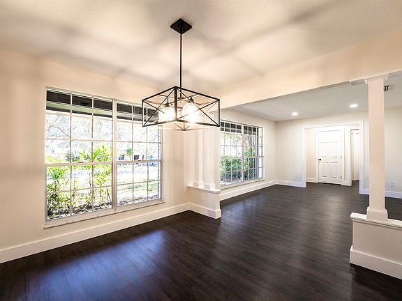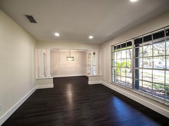 Welcome to this beautifully updated single-family oasis, where privacy meets elegance in a serene setting surrounded by mature trees. Imagine yourself in this three-bedroom, two-bath residence that's designed to delight with its functional and sophisticated charm. As you step inside, you'll be greeted by a spacious floorplan boasting a formal living room that's perfect for an office or flexible use space, adding to the home's versatility. Entertain with ease in the formal dining room, graced by architectural columns that exude character and style. The heart of the home is the family room, complete with a cozy brick fireplace for those wood-burning nights, flowing effortlessly into an open-concept kitchen. Here, brand new stainless appliances, a massive oversized countertop, and beautiful modern light fixtures await to elevate your culinary experience. Retreat to the large owner's suite, where vaulted ceilings create an airy ambiance, and the ensuite bathroom indulges with dual vanities and a rain showerhead for a spa-like experience. Nestled on a generous lot that offers both a retreat-like feel and ample space for outdoor activities, this home includes a convenient two-car parking space. It's more than a house; it's a lifestyle waiting for you to embrace.
