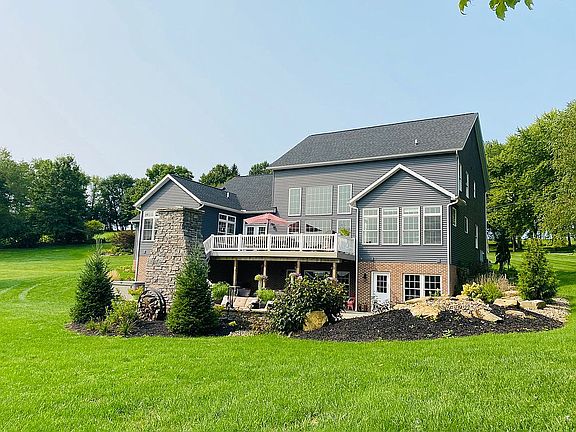 Breathtaking custom built colonial w/4 bedroom 4.5 bath on 2 acres! Country living yet close to the highways, shopping and about 2 miles to Quail Hollow State Park. Built in 2013, this one has so much to offer. As you pull in the driveway you will notice the meticulous landscaping and the oversized 4 car attached garage is over 1200 square feet. Backyard is amazing. Backyard offers a large maintenance free deck that walks down to a massive stamped concrete patio. Patio is great for entertaining w/custom fireplace, built-in benches, waterfall and private country views. As you walk in the front door you will notice the open floor plan w/high 10 foot ceilings and oversized 8 foot doors on first floors. Massive 21 x 17 kitchen w/oversized island. First floor is a must see with a large 12 x 10 walk in closet w/built ins, 13 x 11 master bath w/double sinks and a custom tiled shower. Upstairs offers 3 good sized bedrooms, one w/its own bathroom and the other 2 with a jack/jill bath w/separate vanities. Walkout basement offers over 2000 additional sq. ft w/ full bath, rec room and an indoor putting green. Back basement wall is lined w/tons of windows letting in tons of natural light. Too many amenities/upgrades to list all. This one is not only one to view online, but a must see in person. Will make a great house to call home.