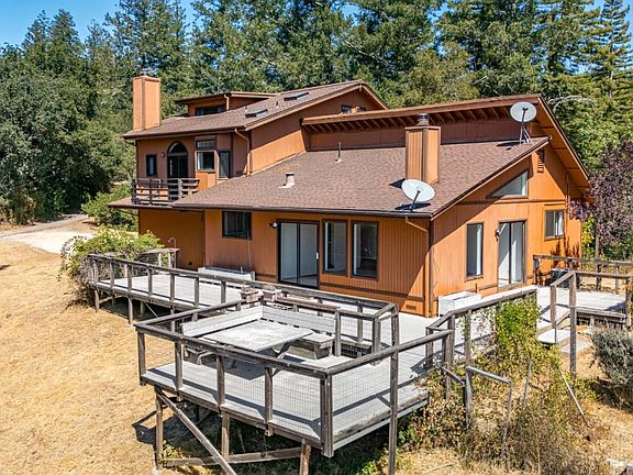 Mountain living at its finest. This custom built 4 BR 3 bath home is located just 10 minutes from Boulder Creek and 25 minutes to Los Gatos on 8 sun drenched acres. Stunning mountain views from every window and deck. Two private primary suites, one with a fireplace and private deck with views of the sunrise over the mountain ridge. Family room/dining room combo off the kitchen features a vaulted wood ceiling and raised stone fireplace. This home is all electric, the perfect home to add solar. A three car garage with one oversized bay for a RV or boat. Outside you will find a wrap around deck and raised beds for the gardeners. Picture your chickens free range roaming around their coop. This home has a wonderful neighborhood feel but distance between neighbors for privacy.