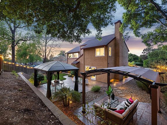 An easy California lifestyle awaits in this contemporary 3BR/2.5BA duet nestled among Benicia’s parks and greenbelts. Built on an expansive wraparound lot, this 1602 SQFT home offers exceptional indoor/outdoor living in a tucked away and private setting (the only shared wall is in the garage). The sun splashed great room features crown molding, a cozy fireplace, and a large arched passthrough to the adjoining chef’s kitchen with upgraded appliances, granite counters, and recessed lighting. Both the dining room and great room have glass doors to the backyard, patios, level lawn area, large gazebo and pergola. Surrounded by mature landscaping and shady oaks, the backyard is ready for entertaining, relaxation, or play. The first floor is complete with a powder room and interior access to the two-car garage with laundry area. Upstairs, two sunny secondary bedrooms share a full bath. The huge primary bedroom has an en-suite bathroom with separate shower and jetted tub, a walk-in cedar closet, and picture windows. Beautiful California open space is out your front door with multiple parks, hiking trails, playgrounds, plus a lake and shoreline for fishing and boating. Top schools, downtown Benicia, and easy commutes by freeway or ferry are nearby. This is the best of the North Bay!
