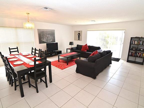 Marvelous 4 bedroom, 3 bathroom two story home with West facing pool! Generously sized living and dining room layout with ceramic tile flooring and contemporary furnishings. This large area is very bright with lots of natural lighting. The kitchen is separate located towards the front of the house with ceramic tile and modern kitchen appliances. The master en-suite bedroom has access to and views of the pool. There is an additional bedroom located downstairs with bathroom along with 2 more bedrooms upstairs including a full sized bathroom to share.