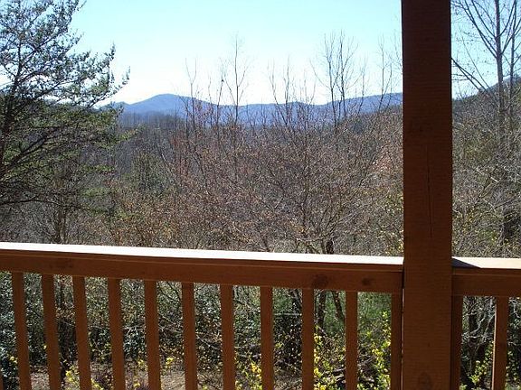 Extreme view of the mountains from covered 70' back deck. Clean, like-new home with cathedral ceiling, oak floors, vertical blinds. Loft is third bedroom. Spacious livingroom. Three bay windows. Work from your home office with 20' tongue & groove ceilings. End-of-road privacy. Gazebo with porch swing overlooking adjacent waterfall. Enjoy watching the deer, then gaze upward and out to see Wayah Bald. Beautifully landscaped with lots of flowers. Your own piece of heaven! (includes PIN#6566587233).
