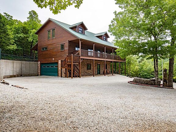 Come see your dream LOG HOME in the woods with a view of Table Rock Lake. Located near the lake on 4 lots, this home has so many wonderful features you will not want to leave. The home is constructed of real logs, basement walls are concrete, 8 and 10 inches thick. Walk out basement has a two-car garage/workshop plus family room and bath. Main floor has an open floor plan with expansive great room and lots of windows, plus a fireplace that will warm you on winter nights. Two sides of the house have covered decks with over 700 square feet of outdoor living space. Solar panels are on the roof to reduce electric costs and low maintenance landscaping so you can spend your time playing. Storage closets are located all through the home. There is a space provided for an RV to park.