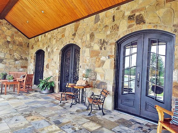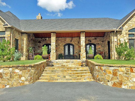 A retreat environment awaits new owner with lodge style home & open floor plan w-20' ceilings, 2 fireplaces, porte-cochere & 2 car garage. Walls of windows & double glass doors, all overlook 2 managed bass lakes (18ac, 4ac), 2ac lake & a pond. Deep wells furnish home & 3 sprinkler systems. Artesian springs are another water source. This rock home sits on hill overlooking a landscaped private environment only 10 minutes from downtown. Enjoy East Texas at its best from your front porch watching the spectacular sunsets. Built for handicapped accessibility and entries from front & rear of property