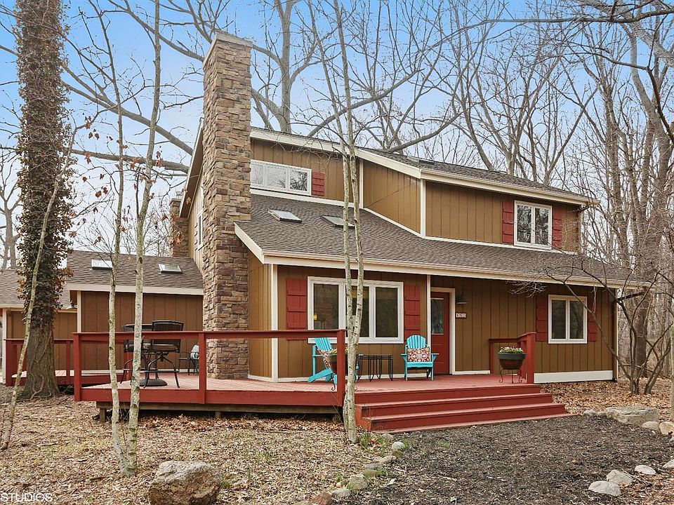 Move-in Ready in Michiana Shores! Whether you are looking for a Primary Residence or a 2nd Home, this 3 Bedroom 2.5 Bath home could be either. Extra long list of new updates include ROOF, bathrooms, flooring, stone chimney, exterior paint, and mudroom. Situated on a beautifully wooded lot with a short walk to the lake, you get the best of both worlds. Often desirable open main floor plan with kitchen that transitions to dining area. Large wrap around deck comes complete with a Hot Tub for all to enjoy. Detached 2 Car Garage provides plenty of storage and large driveway allows for plenty of parking. Stones throw to local favorite Stop 50 Pizza. Schedule your showing today and be in for Summer! Welcome to 450 Lupine Drive!