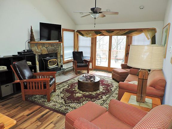 Gorgeous views of ski slopes from this 4 bedroom 4 Bath twin townhome Stone wood stove fireplace, Air conditioning, walkout finished basement with gaming area. House comes fully furnished; Everything stays! Will make a great investment property and currently has a good rental history.Just minutes to all the Activities at Camelback Mountain and Close to Outlet shopping and Mt Airy Casino