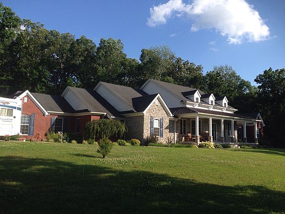 Spectacular Custom built home located on the edge of Historic Bardstown Ky. Much thought was given to the long tree lined driveway approaching the beautiful 2,915 sq ft brick & stone home sitting on 9.34 acres of total privacy. Upon entering the home through the gracious foyer you notice the attention to detail & fine finishes. This home has a desirable floor plan with gorgeous hardwood, tile, & carpet throughout. The spacious living room features a beautiful stone fireplace. The dream kitchen boasts an abundance of cabinetry with a bar & range/stove, dishwasher, refrigerator & microwave remaining. The sunny dining area has plenty of light & several windows. As a bonus, there is an office/library off the kitchen. The master suite is a wonderful retreat with sitting area & bath featuring
