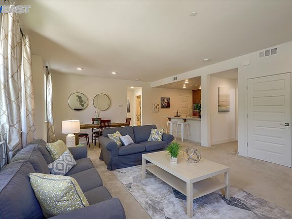 Ideally located in an exciting and expanding area of Alameda, this single level, 2 bd/2 bath corner unit condo is spacious, updated, thoughtfully designed, and ready to show today’s buyer why life is better on the island. The living, dining, and kitchen welcome plenty of natural light from the surrounding windows. Quartz countertops, gorgeous cabinetry, and an eat-in peninsula highlight the kitchen, and the flow between living and dining spaces is perfect for entertaining. Both sunny bedrooms are well-sized, and the primary offers a walk-in closet and an en suite. In-unit laundry and a tandem 2 car garage add ease and convenience. Outside,find lush landscaping, park spaces, and established trees while across the street, incredible shopping & dining awaits at Alameda Landing, including a free shuttle to BART in Oakland. Minutes from the waterfront, 880/980, and the endless charm of Alameda, don’t miss this opportunity to make this corner of the island your home.