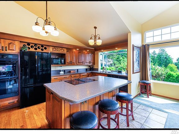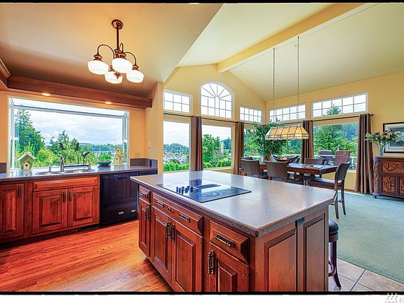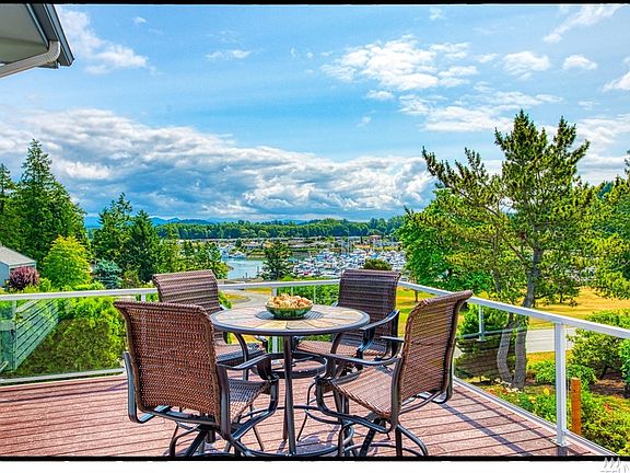 Watch the morning sun rise over the marina with the Cascades in the background from your great room floor plan with large solar gray windows & vaulted ceilings. Huge 15x30 master bedroom with adjacent laundry, TWO double car garages plus 14x17 shop. 15 SEER heat pump, chef's panty, lower level mother-in-law unit with kitchenette and living room/office, beautiful flowering grounds. Community amenities incl. moorage, swimming pools, tennis, golf, club house, private beaches, boat ramp & BBQ areas.