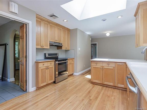 Easy living in a fantastic location this well maintained ranch affords walkability to neighborhood park, playground, Lake Mohegan and hiking trails. Spacious living room with fireplace, sun-filled kitchen with stainless steel appliances open to dining room, and 2 bedrooms plus Master with newly redone hardwood floors. Master bedroom has walk in closet with closet system, full bath with hydro tub and a vaulted ceiling. Views of the private and gorgeous backyard abound. Fourth bedroom in its own wing has ensuite full bath, wetbar and spacious loft this space is ideal for in-law, au-pair, guests, or working from home with its own back door entrance. First floor laundry. Many updates including new roof, finished room with fireplace in lower level, generator hook-up, garage door and exterior paint. Sited on a park-like, .46 acre lot with lush lawn and beautiful trees. Entertain on the deck and attached patio; away from it all but in a convenient Fairfield location near schools, shopping, Trader Joes and award winning Fairfield Woods Branch Library.