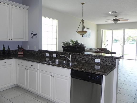 Open and spacious 4/2 with a 2 car garage. Enjoy the beautiful sunrises from your back patio that over looks a large lake. All newer Stainless Steel appliances in the kitchen, newer and upgraded washer and dryer. Two year old air handler, Newer hot water heater, all bedrooms with updated wood looking tiled floors. Lawn and alarm is monitored through the HOA. Community offers: 24/7 man gated entry,clubhouse with pool and gym, tennis, play area for children and more. SELLER WILL PAY THE $900.00 CAPITAL CONTRIBUTION AT CLOSING FOR THE BUYER.