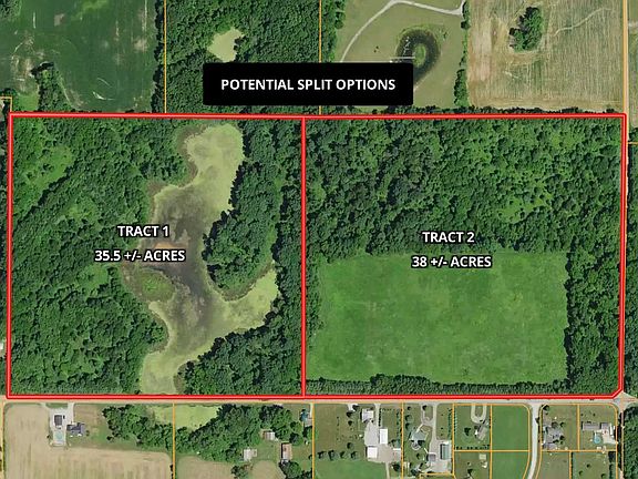 73.6 +/- Acres For Sale - Amazing Hunting & Recreational Property - Fulton County Indiana Parcel Location & Info: Discover your slice of paradise in Fulton County, Indiana @ 450 N 100 W Rochester. Embrace the allure of 73.6 pristine acres nestled northwest of Rochester, just out of view from US 31. This remarkable property isn't just land; it's an invitation to an outdoor enthusiast's dream. For those looking for a smaller parcel, this will be available in 2 smaller tracts (see pictures & map). Opportunity: For avid hunters, this haven stands out as one of the premier hunting properties in North Central Indiana. With a distinguished pedigree boasting phenomenal deer hunting, it's a sanctuary where hunting dreams come to life. But the appeal doesn't stop there; a pond/marsh adds another layer of excitement, providing exceptional waterfowl hunting opportunities. If you like turkey hunting, this is also a high quality property for that! Experience the vision and effort of the current owner, who has and currently is working to improve the landscape. Picture yourself unwinding in the comfort of a strategically placed shed near the marsh, ready to indulge in moments of tranquility or embark on thrilling hunting expeditions. Additionally, a thoughtfully established building location with a new driveway and electrical already ran on the southwest side offers a captivating view overlooking the picturesque wetland area, promising unforgettableviews and endless possibilities for creating your retreat. Nature enthusiasts will appreciate the blend of mature hardwoods and pines thoughtfully planted years ago, adding both beauty and value to the property. Whether you're seeking solace in nature or yearning for exhilarating outdoor adventures, this sprawling acreage beckons with boundless opportunities. A very select cut of mature trees 3 years ago has enhanced the habitat for thick cover areas. A food plot has been carefully carved in the middle of the old crp section with easy access to a overlooking blind from the road. There is roughly 14 acres that use to be crp that can be transitioned to tillable or planted specific for wildlife into food plots or natural habitat. 2 points of Access: Enter from the east through a lockable gate off 100 W. There is a new, beautiful drive just established off of 450 N as well which accesses the new building location. Programs: Parcel is enrolled in the Forest program.