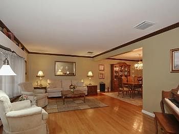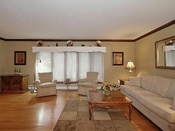 Bright and sunny living room from the large bay  windows( all windows thermo pane).  Brick and vinyl siding .The main foyer from the covered front porch leads Living Room, kitchen and the family room with powder room and fireplace as well as a French sliding door to the back yard.A wide  staircase leads  to the second floor 3  bedrooms. The master bedroom suite with full bath and 2 double closets as well as a walk in closet. A main bath with granite  marble and 2 sink vanity and linen closet.  2 other bedrooms with huge closet space. On there is same level you will find a attic storage area that has the future expansion possibilities. There is also a  third floor walk up Attic area with whole house fan. The heating system 2004 is gas hot water system with a central conditioning system, environmentally friendly  rinnai gas tank-less hot water heater installed 2008.  There is a huge recreation room on the  walk out lower level  and a  2 car attached garage leading to the kitchen area This home is beautiful and well built.Close to Summit Train Routes 78 and 22 and close to the Watchung park trailside recreation Area.Mountainside New jersey voted the #1 community in Union County By NJ Monthly