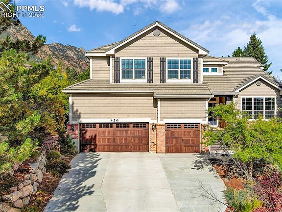 This exquisite custom residence is nestled in the highly sought-after Boulders Broadmoor community. Boasting 5,596 total square feet, this 5-bedroom, 4-bathroom, 3-car garage home perfectly blends timeless elegance, thoughtful functionality, and breathtaking views of Broadmoor Bluffs and Cheyenne Mountain. From the moment you arrive, you'll be impressed by the curb appeal. This southeast-facing home sits on a desirable corner lot, features upgraded garage doors, and a low-maintenance cement tile roof. Step inside to be welcomed by soaring ceilings, abundant natural light, and rich hardwood floors. The main level includes. a formal living and dining room, while the heart of the home features an open-concept layout ideal for entertaining or relaxing, with 4-zone surround sound, built-in cabinetry, a gas fireplace, and an expansive great room. The kitchen boasts custom cabinetry with glass front accents, gas cooktop, double oven, hidden microwave, and Electrolux refrigerator. The breakfast nook flows seamlessly to the composite deck, complete with a gas line for grilling and stunning foothill views. The fence is grandfathered into the HOA, providing rare privacy & flexibility. The main-level primary suite is a serene retreat featuring an updated spa-style shower, dual sinks, a standalone soaking tub, and his-and-hers walk-in closets. Up the stunning curved staircase, you’ll find three generously sized bedrooms, each with walk-in closets, and a full bath. The garden-level basement transforms into your personal escape with a pub-style wet bar, wine closet, pool table (included!), gas fireplace, and custom built-ins. There’s also a dedicated home office including built in features, fitness room, and another large bedroom with a walk-in closet. Located just minutes from Fisher’s Canyon Trail, local shopping, and top-rated Cheyenne Mountain D-12 schools, this turnkey home offers the best of luxury foothill living and is ready to impress, schedule your private showing today!