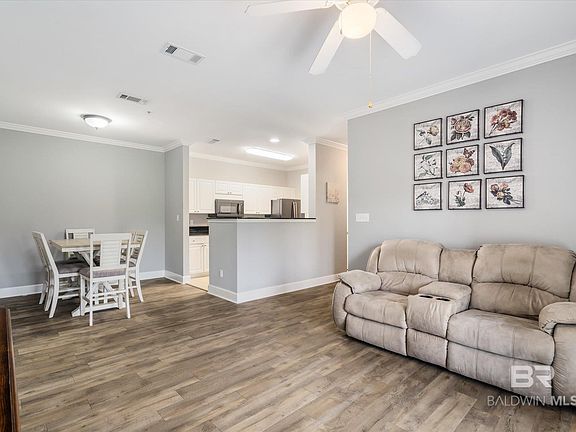 Enjoy the comfort and convenience of this ground floor, 3 bedroom condo, located near Tanger Outlets, The Park at OWA, the YMCA, and just minutes from the sugar sand beaches in Gulf Shores. Enjoy the impressive swimming pool and lounging area or relax on your own screened-in patio with a view of the landscaped grounds. This split bedroom plan features a primary bedroom with built-ins and a walk-in closet. The ensuite bath is highlighted with a recently remodeled, beautiful, walk-in shower. The updated kitchen features white cabinetry, granite countertops and beautiful new black stainless appliances. This stunning condo also boasts updated paint, vinyl plank flooring, crown molding and a new HVAC. This is a move-in-ready home that you don’t want to miss!