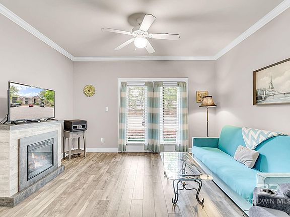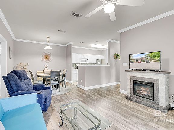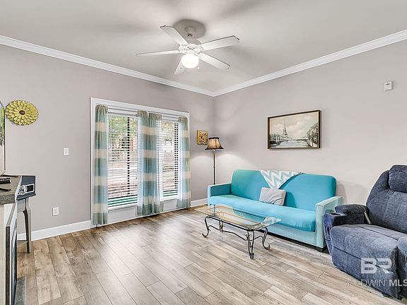 This ground floor condo features two bedrooms, two bathrooms and new laminate flooring, offering convenience and comfort. With an open layout, the living space flows seamlessly into the kitchen and dining room, creating an inviting atmosphere for entertaining. The primary bedroom includes an ensuite bath for added privacy with a recently upgraded walk in shower, while the second bedroom provides flexibility for guests or home office use. Relax on the screened porch while enjoying the best of indoor-outdoor living year-round. Appreciate the convenience of ground floor living with easy access to the community pool located just steps away, minutes from shopping and Gulf Shores beautiful beaches. One year home warranty provided. Don't miss out on this one! Buyer to verify all information during due diligence.