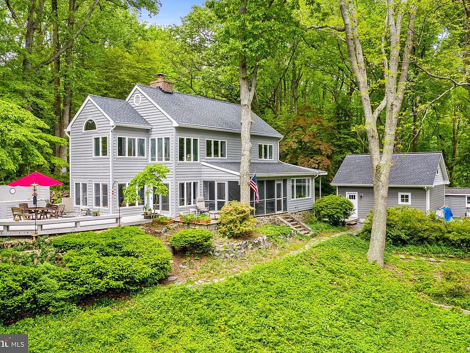 A peaceful drive up 1.5 miles of wooded road will lead you to discover Park Creek and this amazing waterfront home nestled in serenity on an elevated 2.33 acres in the desirable community of North Shore. Upon entering the home, sun-bathed open spaces and gleaming hardwood floors create a warm and decadent atmosphere. Prepare gourmet meals in the chef-inspired kitchen appointed with stainless steel KitchenAid appliances, custom natural cherry soft close cabinetry, granite counters, and a breakfast bar. A light-filled breakfast room off the kitchen features a picture window and access to the screened porch. The dining room is the perfect place to enjoy entertaining family and friends with the convenience of a pass-through to the kitchen, ambiance from the brick accented wood-burning stove, and access to the screened porch. Relax and unwind in the family room with sweeping nature views out of the wrap-around windows and a gas fireplace. A bedroom with an en-suite full bath and a spacious dual entry laundry room complete the main level. Travel to the upper level where commodious living and gorgeous views carry on into your master suite highlighted by a walk-in closet with built-ins, an additional closet, and a sitting room. Continue your royal treatment in the en-suite master bath showcasing wrap-around windows, a jetted soaking tub, separate shower, and dual sink vanity. Two additional bedrooms, one with a private deck, and a full bath complete the upper level sleeping quarters. Enjoy a true outdoor oasis overlooking Park Creek from a number of private locations including the screened porch, deck with built-in seating, and Pennsylvania bluestone patio. The property also boasts a detached 2-car garage with above storage and a storage shed. On the water side -just off the Magothy River you've got a deep water pier and boat dock with three slips and a 12,000 pound lift. This amazing waterfront property truly embodies the quintessential nautical lifestyle with the convenience of commuter distance to Annapolis, Baltimore, and D.C., as well as 20 minutes to BWI Airport. Don't miss out on owning a piece of perfection! Property Updates (2014-19): Interior painting, walkway and patio installed, new well pump, garage with bonus room, repainted decks, boat lift serviced, Regency wood burning insert and stainless steel flue liner installed, new gas cooktop, roof over east side exterior door, insulated and air sealed attic, added platform and pier extension, roof over east sidewalk, replaced remaining galvanized water piping, and so much more!