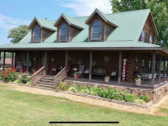 Take a look at this log home on a quiet 11 acre tract, offering amazing sunsets. This property boasts a 30x40 shop complete with electricity and a lean-to on each side, providing ample space for all your hobbies and projects, equipped with an RV hookup. Enjoy the summer days by the above-ground pool with a spacious deck perfect for entertaining. The wrap-around porch invites you to relax and savor the tranquility of your surroundings. 2574 sq ft of living space with 3 bedrooms and 2.5 baths, there's plenty of room for everyone. The versatile loft area can be utilized as an extra den, living area, loft bedroom, office, or gameroom catering to your unique needs. The primary-suite is conveniently located on the main floor and features an additional office/craft room/nursery that adjoins. The two guest bedrooms on the second floor provide ample space for family or guests. A well-appointed walk-in pantry, gas range and extra cabinetry complements the kitchen. This home offers indoor access through the primary-suite closet to the large safe area providing safety during emergencies or extra storage space. Schedule your showing today.