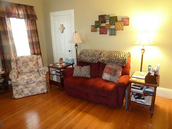 Gracious colonial that has been well cared for. Large rooms throughout with many 9' ceilings. Gleaming hardwood floors. 2 staircases. Living room is bright and inviting and opens to the specious formal dining room. Perfect space for entertaining. The den off the living room could be used as a fourth bedroom if needed. Updated kitchen with oak cabinets and laundry hookups for ease. Upstairs, 2 out of the three bedrooms could easily accommodate king sized furniture. Newer bath has great closets space for storage. In addition there is a smaller room that you could use for a variety of things-computer room, prayer room or just storage. Maintenance free vinyl siding. Side porch has recently been rebuilt. Newer roof and gas boiler. Lilac trees, forsythia and roses are an added enjoyment. Close to highway access and shopping.