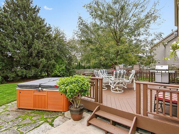 There is plenty of room in this custom home to raise a family in a friendly neighborhood that is walking distance to school. Take advantage of the extra space in the 3 ½ car garage for outside toys, gardening supplies and tools. Enjoy playing in the backyard that is surrounded by mature landscaping and offers a hot tub, patio and deck for relaxing or entertaining. The main floor features an eat-in kitchen with a butlers pantry and plenty of cabinets, a living room, dining room, family room, laundry room, half-bath and an office/den with vaulted ceiling and skylight. Upstairs boasts a master bedroom with a spacious 18 x 8 foot walk-in closet, master bath with jacuzzi tub, along with 3 bedrooms and a full bath. Enjoy family time in the half-finished basement; the other side provides an extra washer/dryer, shelves and abundant storage area. Make some memories here!