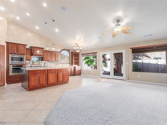 This Stunning 3-bed, 3-bath, home nestled at the very foot of a breathtaking desert landscape in the most sought-after Falcon Glenn Subdivision, is now on the market. It displays a 3-car garage and stone accents on the facade. Inviting open floor plan reveals vaulted ceilings, a blend of carpet and tile floors, pre-wired surround sound, and a sizable great room that is tailor-made for memorable gatherings. Immaculate kitchen is a chef's dream, boasting chocolate-stained cabinets, a pantry, granite counters, SS appliances, built-in wall ovens, and a center island with a breakfast bar. The formal dining room sets the scene for refined meals. Main bedroom in a sanctuary of relaxation, offering a private bathroom with dual sinks, a jetted tub, and a walk-on closet. Backyard promises tranquility with its covered patio, and an unobstructed view of the sublime rock formations that the desert landscape offers. Seize the opportunity to call this exquisite property your home today!