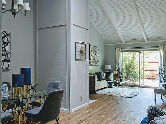 Welcome to your new home! This spacious 2 BD 1 BA is a one-story end unit townhome. Its large living room has vaulted ceilings, a fireplace and hardwood floors. A beautifully remodeled kitchen comes with granite countertops, white cabinets, subway tile backsplash and stainless steel appliances. Laundry room includes full size washer and dryer. Access from 2 carport to a generous private patio with a brand new patio deck. Surrounded by top ranked schools, shops, restaurants, gym and theater. Come meet your neighbors today!