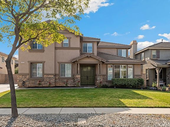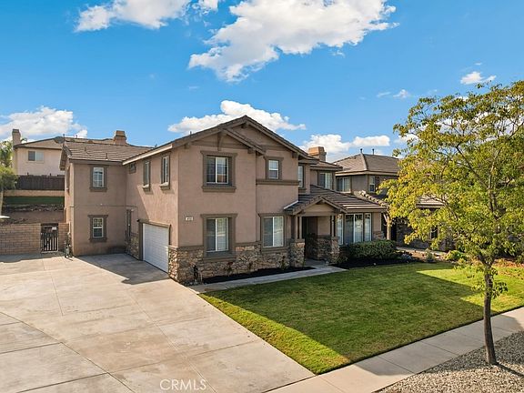 Welcome home to this highly sought after Corona Neighborhood, centrally located near schools, parks, freeways and shopping. Custom neutral paint, recessed lighting, flooring and light-catching windows throughout that compliment the bright and airy floorplan of this gorgeous 5 bedroom home. The kitchen features everything a home cook is looking for - a spacious kitchen island, customized countertops and cabinets, a stainless steel wide farmhouse sink, butler pantry and a large walk in pantry, as well as a high end Thermador 6 burner stove and double oven. Open to the kitchen is an inviting living room with a cozy fireplace and a spacious formal dining area with glass sliding doors to the outside. Down stairs is a full bedroom and bath perfect for guests! The primary bedroom offers an en-suite bathroom with tile floors, double sinks and a luxuriously large walk-in closet. A main feature of this home is the closet space - every closet has lots of space. One upstairs bedroom has a full bathroom within the room. A spacious loft for entertaining is located upstairs. The backyard is low maintenance, and has a perfectly sized pool that allows room for backyard entertaining. The home includes a Tesla car charger, and RV parking space. The home features a new HVAC system, with lots of upgrades! This community an ideal choice for fine living in the Corona area.