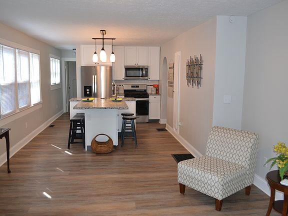 Like new 3 bedroom 2 bath bungalow. Gorgeous remodeled home. Walk into a large screened in front porch. Open concept w beautiful kitchen/living area. Kitchen w granite counter tops, island and bar for dining. New white shaker cabinets-even under the bar area. All appliances are new stainless steel. New 3 panel doors spark the newness of this home. Master bedroom w nice size closets and walk in shower. Two other bedrooms nice for bunk beds or office area. Washer/dryer area on main floor. Full basement can be used as additional living area. It is clean and ready for your party. Outside is highlighted w a drive that allows for turning around right out onto Arlington instead of backing out. Yard area has a firepit area.