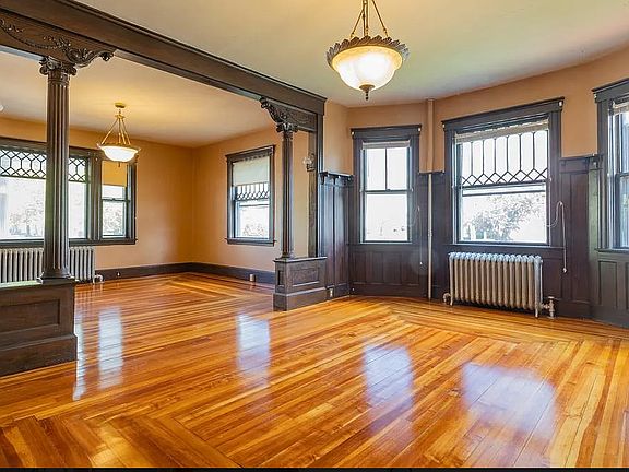 THIS UNIT IS SPOKEN FOR AND WAITING FOR SIGNATURES ON THE LEASE. IT WILL BE PULLED OFF THE MARKET ONCE COMPLETE. This timeless and beautiful unit, now officially on the market, boasts original hardwood floors in the bedrooms and living areas, along with new laminate flooring in the bathroom and kitchen. The home features gorgeous antique finishes and trim that add to its classic charm. With 2 bedrooms, 1 bathroom, an eat-in kitchen, a parlor, and a living room, this unit offers both character and functionality. The full unfinished basement, shared by all three units, provides ample storage, a washer and dryer, and space for a workshop. The first-floor unit enjoys exclusive use of the front porch. Outside, the fenced yard is perfect for gatherings, with brick pavers, a smoker/gas grill, and a charcoal grill for tenant use. Landscaping, hot water, water, refuse removal, and snow removal are all included. Plus, you'll have the convenience of 2 driveway spaces along with off-street parking on South Main. Owner pays for water, hot water, landscaping, snow removal, refuse removal, & sewer. Tenant pays for electricity and gas (stove only)