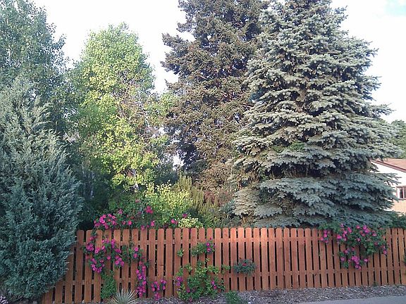 Quiet secluded 2 bedroom 1 bathroom cottage hidden from the street behind a fully fenced beautifully landscaped forest themed yard in Denver proper. Owner has lived here for 18 years and sculpted this unique home to feel removed from the hustle and bustle of the big city. This fenced property keeps the solicitors and public out but nature within. A small lawn within the forest of 20+ young aspens, largest blue spruce in the area, australian pine and fur trees keep much of the yard shady in the summer months. Mature fruit trees ring the south and east side of property. These include plums, peach, apricot, pear, apple and sweet cherries which keep the owner supplied with fruit all summer long and frozen treats all winter. Raspberries, concord grapes and strawberries are found through the landscape and are perennial producers every year. Owner plants veggies throughout the landscape in spring and eat these all summer and fall. The soil is fantastic and is a pesticide free. Most of the landscape is irrigated with timers, drip system and sprinklers. Birds and squirrels abound and will take some of the harvest but giving to the neighbors is a price to pay to have this gem. Several patios for buyer to furnish and enjoy. A hot tub is located in a nook on one of them. A plethora of storage is on the property with 2 electrified sheds, another shed connected to the house and a large attic. House was built in the 1940’s with several build-ons. Tile and wood floors throughout most of the house. Kitchen has low ceilings but the owner is 6”1’ and fits nicely. Master bed room is south facing with large windows and glass door one of the patios. Bathroom is of normal size with bathtub/shower. Laundry room with cabinets and room for washer and dryer. Partially finished basement the size of a bedroom downstairs. Swamp cooler and ceiling fans are in the house. This home is cozy and simple, great for a couple or small family who like to spend time outside in the landscape or comfy warm inside within the partial cinder block frame of the main house. Early summer and both cherry trees are full... picking small buckets full of sweet cherries. Other fruit trees look to have some good yields in the summer and fall. This could be yours next year. Ready for Showings starting Monday June 23rd.
