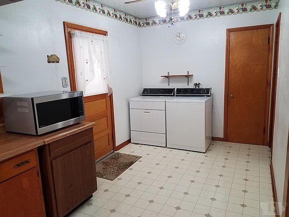 This home is great move-in condition,Some ceiling fans,newer replacement windows,hi-eff furnace,All kitchen appliances stay with the home for the benefit of the new owners.Refrigerator,Gas Stove,Microwave,Washer and Dryer.All Natural woodwork,3-season room of the kitchen area.poured basement walls (insulated)Front Door is newer.Shed also stays with the property,garage size is 24'x26' with garage door openers.