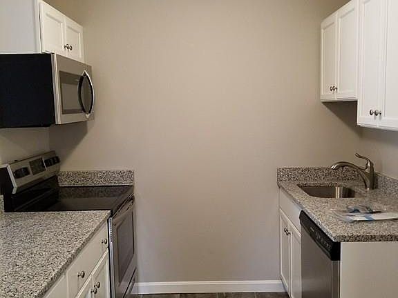 Completely brand new unit. ALL new appliances. Owner upgraded kitchen cabinets and added granite when this building was rebuilt. Still has the smell of fresh new paint. Brand new common laundry. Privately set in the back of the complex. Hard wood in the Living Room and hall and tile in the kitchen the bedroom has wall to wall carpeting.
