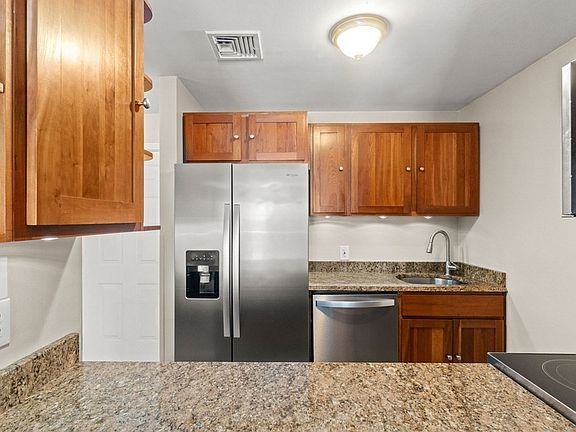 This first-floor garden-style unit in Building 4 features an open-concept kitchen and living area with tile flooring, stainless steel appliances, and vinyl laminate in the living room. A sliding door leads to your private patio. The updated bathroom includes a tiled tub/shower combo, granite vanity, and a hallway linen closet. The bedroom offers vinyl laminate flooring, large windows for natural light, and a spacious double-door closet. Coin-operated laundry is available on both floors. This pet-friendly complex allows cats and small dogs. One assigned parking space is included, with visitor parking available. Conveniently located off Route 138, with quick access to US 44, Route 24, and I-495.Not FHA approved.