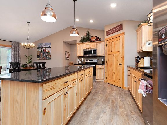 Fantastic main level living home in a newer development just north of Staples! This wonderful maintained home has main great features including an open concept floor plan, spacious kitchen w/ granite, custom cabinets, center island, dining room that features a patio door to the concrete patio overlooking the private backyard, and pond w/ a bridge to a private island, primary suite w/ walk-in closet, and private bath, laundry/mud room off the insulated and heated 2 stall garage, floor to ceiling stone fireplace in living room, storage shed, custom fire pit area, in ground sprinkler system that is on its own meter for more affordable lawn irrigation. All this and much more! You have to take a look at this one!