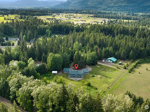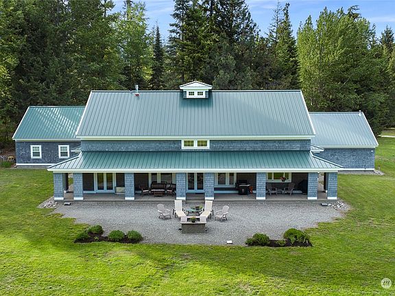 Custom designed with attention to every detail, this impeccable home with shop, garage & extra outbuilding on 4 acres is in a class of its own. Covered breezeways from shop & garage lead to the exposed aggregate concrete porch which wraps completely around the home & back to the patio & firepit. The interior will delight with coffered ceilings, extensive use of distinctive lighting, LVP flooring, french doors & a cupola upstairs! The kitchen is the hub of the home with 60" Wolf Range, SS appliances, cherry cabinets, granite & Corian countertops & eating island. SIP construction with 4 ton Geo-Thermal Heat Pump provides amazing heat/cooling efficiency. KRD irrigation, sprinkler system, heated garage & shop with 1/2 bath. Recently fire-wised!