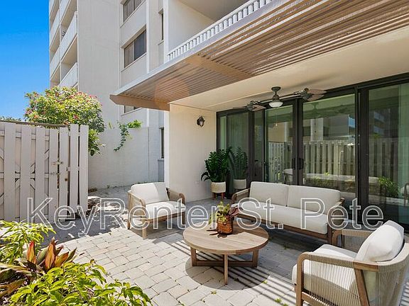 Welcome to 450 Treasure Island Causeway, Unit 104, a stunning ground-floor residence offering exceptional privacy and a spacious patio that runs the entire length of the unit with over 500+SF. This outdoor space is perfect for entertaining or simply relaxing in the shade. The expanse of this patio space is unparalleled. The unit's layout is designed for convenience, with easy access to the parking area from both the lobby and a private fence gate. Inside, you'll find a split floor plan with two large bedrooms, each featuring walk-in closets providing ample storage and comfort. The home is well-maintained, ensuring a hassle-free living experience. The open-concept living and dining areas flow seamlessly into the kitchen, creating a welcoming environment for family and friends. The kitchen is efficiently designed with stainless appliances & granite countertops featuring a breakfast bar and large dining area. Located just minutes from the powdery sands of the Gulf in Treasure Island, the complex sits on Boca Ciega Bay, just steps away from your doorstep and access to the marina next door. This property offers the best of coastal living, situated on the Causeway means quick & easy access to the mainland/St Pete and the Gulf on the barrier island. Enjoy the convenience of a dedicated covered parking space and the added benefit of an in-unit stacked full-size laundry. Don't miss this opportunity to live in one of Treasure Island's most desirable locations. BASICS: * Availability: Showing availability limited. * Pets Allowed: NO complex does not allow * Utilities: Electric in tenants name * Water, wifi, cable included in rent * Parking: 1 covered assigned spot * Renter's insurance is required. * Lease Term: Unfurnished, 12 mos THE IMPORTANT THINGS TO KNOW: * No Smoking * Application Fee is $50 per Adult, Non-Refundable. * Please review Application Criteria prior to applying. * Application turnaround time is 1-3 Business days * Security Deposit: One Month's Rent * HOA Application: REQUIRED ADDITIONAL APPLICATION FEE & APPROVAL FOR PLACEMENT * Residents are enrolled in the Resident Benefits Package (RBP) for $44.95/month which includes required renters insurance, HVAC air filter delivery (for applicable properties), credit building to help boost your credit score with timely rent payments, $1M Identity Protection, move-in concierge service making utility & home service set-up connections a breeze during your move-in, our best-in-class resident rewards program, and much more! More details upon application. * Other terms, fees, and conditions may apply. All information is deemed reliable but not guaranteed and is subject to change. Rent is subject to change. Amenities: Dock, Dining Room, Elevator, Guest Parking, HOA Community, Living Room, Internet Included, Patio, Storage Unit, Tile Flooring, Canal, Waterfront: Gulf, Wheelchair Access, Cable Included