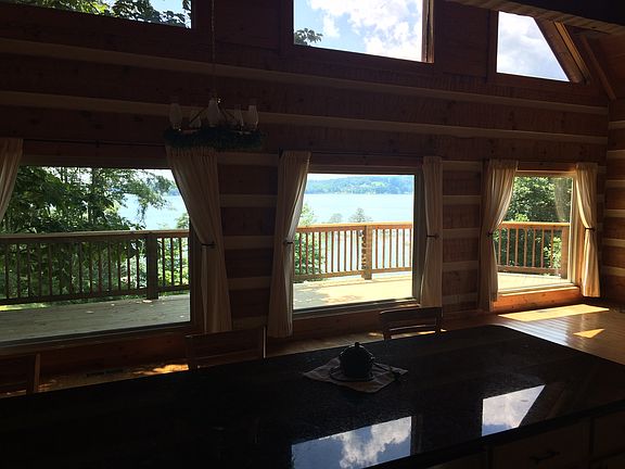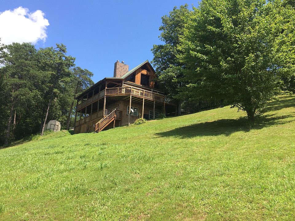 Cherokee Lakefront Log Home! This 1 1/2 story log home overlooks Cherokee Lake and the mountains. Year round views and lake access. Floating dock. Lot has a gentle slope from house to water. Master suite upstairs. Basement has been finished for separate living quarters. 2 car garage in basement. Open floor plan on main --kitchen features stainless steel appliances, granite countertops, and pantry. Gas log fireplace on main; wood burning fireplace downstairs. Enjoy the sunset over the lake on your covered deck. 2 bedroom septic; house does have 3 bedrooms. Circular driveway. Boat ramp at the end of Oak Grove Road.