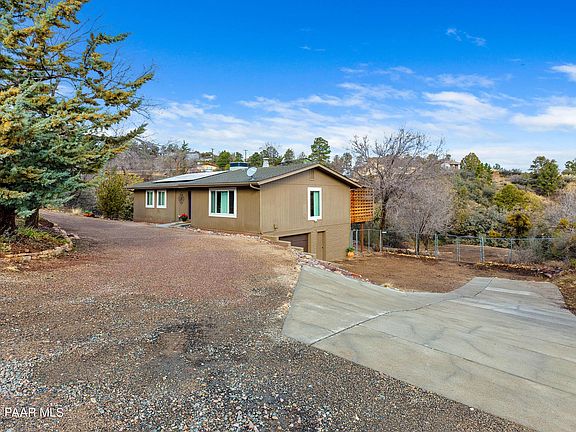 Location! Location! Location! This beautiful 4 bedroom, 3 bath home features: 0.94 of an acre, RV parking, no HOA, and centrally located in Prescott. Also this 2,679 sq ft home has been recently updated with a new HVAC in 2017, new windows in 2022, and the roof is just 7 years old. The solar panels with back-up battery was installed in 2022. Solar can be assumed, but with an acceptable offer, the sellers are willing to pay it off. It also offers 2-car tandem garage, stainless steel kitchen appliances, granite countertops, and downstairs bonus room that could serve any number of functions from family room to hobby room. Come take a look at this great property!