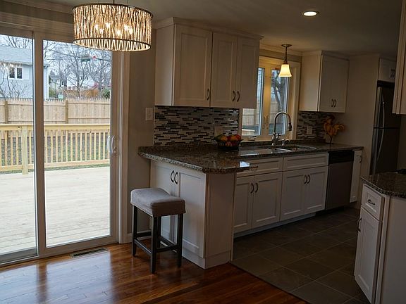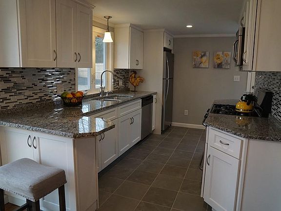 Completely remodeled home, 3 beds,1 bath. New heating system, new roof, new windows and new vinyl siding. Crown molding throughout. Blown in insulation. Gorgeous bathroom with tiled bath/shower and flooring, double vanity with granite countertop. BRAND NEW KITCHEN WITH GRANITE COUNTER TOPS, BREAKFAST NOOK, ALL WOOD CABINETS WITH SOFT CLOSE DRAWERS, SS APPLIANCES. Gleaming hardwood flooring, new lighting fixtures. New 16x20 deck off dining area and kitchen. New driveway. Large fenced in yard. There is a Pottery Barn feeling to this home. If you are looking for MOVE IN READY, then...WELCOME HOME!