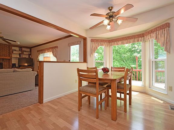 Lovely 2,200 sq ft home in desirable Vineyard Hills on quiet cul de sac street. Original owner, meticulously cared for w/wonderful features & wooded view from large back deck. WBFP w/gas starter, surrounded by built in bookcases, stamped concrete sidewalk, side entry garage and granite in kitchen. Home warranty included.