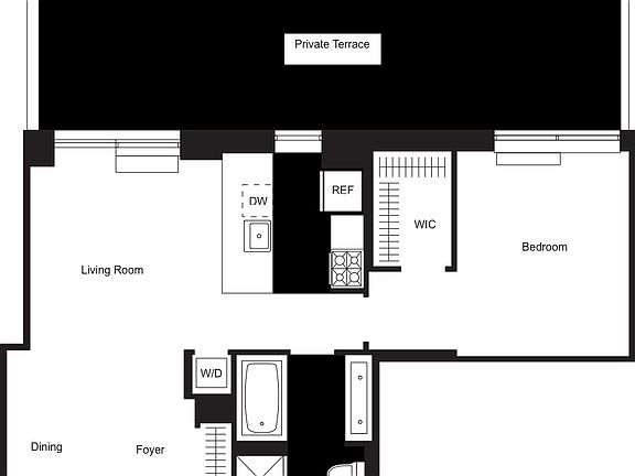 Spacious 1 Bedroom, 1 Bath with a private terrace, high ceilings, a gourmet pass-through kitchen, walk-in closet, double vanity, deep soaking tub and stall shower combo, in-home washer/dryer, upgraded strip wood flooring, and northern exposure with views of the garden.*This is a lease reassignment as of November, and the apartment will be delivered in as in condition. The scheduled lease end date of this assignment is December 31, 2025 with the option to renew for 12 months. Please note there is also an increase of rent as of December 1, 2025 of $136 per month.*