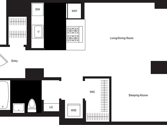 Lease Assignment, apartment is being rented as is. Beautiful Alcove Studio, 1 Bath with a large walk-in closet, in-home washer/dryer, floor-to-ceiling windows, and southern exposure.