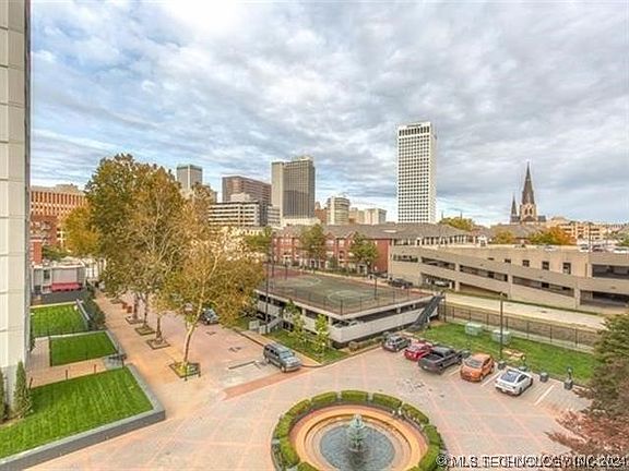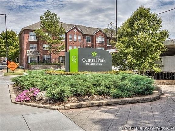 Completely remodeled! This 10th floor corner, 2 bed 2 bath condo in Central Park is sophisticated and cozy. Each room has a wall of windows, giving natural light throughout! This condo is outfitted with google smart home LED lighting and auto blind controls. Petrified wood plank tile throughout. All new custom cabinets, paint, fixtures, hardware, and more. The beautiful kitchen is equipped with soft close custom built cabinetry, granite counters, and a high-end black chrome Samsung appliance package. The cook in you will love the large farmhouse galley sink which includes a removable cutting board and rinse platforms. Also included in this high-end kitchen is an LED lit kitchen double faucet, pantry and more. Enjoy the spacious living room with a custom built entertainment cabinet. Shelves, drawers and a hidden panel for the electronics are all attributes of this amazing built in cabinet. Cozy up to the warmth of the built-in fireplace which has many color changing settings, glass rocks and heat levels. Both bathrooms showcase rain shower heads, wands and a modern design. Enjoy the connivence of power Hunter Douglas designer roller shades. Each window is furnished with this feature. The guest bath offers room for a stackable washer and dryer. Unwind on the balcony each evening while witnessing some of Tulsa's finest sunsets. Deeded parking space in the covered parking garage. On site conveniences include convenience store/café, laundry room, gym, club room, tennis/pickleball court, outdoor track, basketball court, pool and rentable storage units. Central Park offers a Fabulous downtown location for easy access to highways, entertainment, dining and upcoming VA Hospital. HOA fee includes all utilities and high-speed Internet. Also included in this amazing condo is 24/7 security and maintenance. Call today for a private tour!