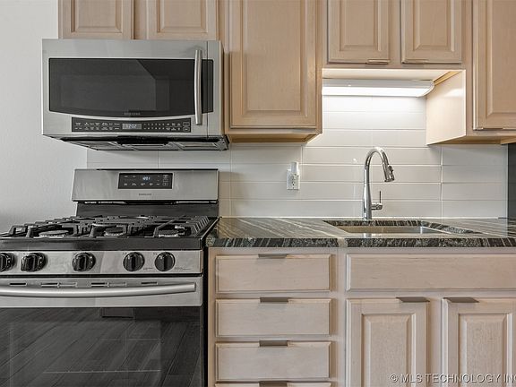 Adorable studio w/breathtaking downtown skyline backdrop beyond the beautiful community park & Sycamore-lined entryway! Meticulously cared for & move-in ready! Granite & Marble countertops; updated cabinetry, hardware, faucets, lighting, and thermostat. Beautiful SS & black appliances; custom tile throughout! Vented Microwave! All original, well-preserved original dressing room closet doors! Custom window coverings! Enjoy all that downtown has to offer: bars, restaurants, art, sporting events, worship centers, tours, festivals, convention centers, office space, hotels, shopping, scooters, holiday attractions, and more! Enjoy being near the Gathering Place & miles & miles of exercise trails, Cherry Street, Brookside, & to the quickest highway access to any direction whatsoever just right outside your gated community! You can have all these amenities when you choose Central Park Residences. This condo is in the same Tower as Toby's Central Market Convenience Store & the FABILOUSLY updated, HI-TEXCH, commercial-grade WORKOUT GYM! The monthly HOA pays ALL UTLITIES, to include Gas, Water, Electric, Trash, Sewer, Hi-Speed Internet PLUS 24/7 Security, On-Sight Property Management, Professional Landscaping, Groundskeeping, Housekeeping, Maintenance Staff, Pet Amenities, on-site Pool, Recycling Container & MORE!