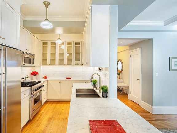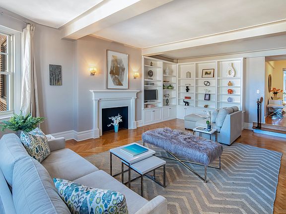 Grand, spacious and sun-flooded five room into six room fully renovated apartment with three open exposures and approximately 1,800 sqft of space! Step into the welcoming foyer with two oversized closets, including one walk-in. Off of the foyer is the gorgeous, sunken 25' living room with a decorative fireplace, built-in bookshelves, and open northern and eastern views. The beautiful windowed kitchen features a Viking range and microwave, Bosch dishwasher, JennAir side by side refrigerator/freezer. and is open to the south facing dining room. Separated from the dining room by pocket French doors is an office/den with a built-in desk and two sunny exposures. The well-appointed primary bedroom has three ample sized closets, a renovated, windowed, en-suite bathroom and an open eastern exposure with gorgeous city views. The oversized second bedroom boasts two closets and two open exposures. Additional features of this lovely home include a second renovated windowed bathroom, vented washer/dryer, abundant storage space, and over 9' ceilings. Designed by renowned architect Emery Roth, 450 West End is a pet-friendly, full service co-op. Amenities include a 24 hour doorman, live-in resident manager, central laundry, and a fabulous roof deck. Located in the heart of the Upper West Side, it is close to Riverside Park, Zabar's, various public transportation options, and many of the terrific shopping and restaurants that the neighborhood has to offer.